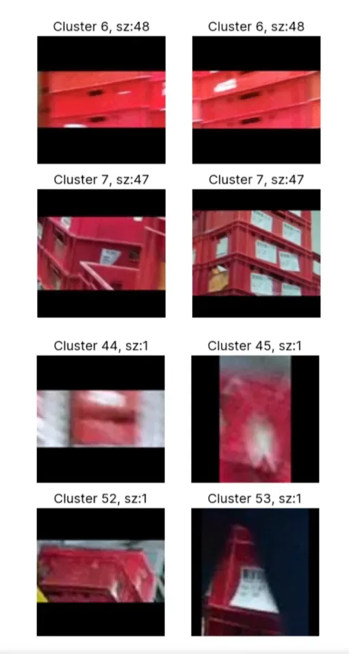 앞서 큰 클러스터에 속한 네 장의 이미지와 작은 클러스터에 속한 네 장의 이미지를 보여드렸는데요. 모두 소형 적재 캐리어의 사진임에도 불구하고 왼 쪽보다 오른 쪽의 사진들이 더 구분하기 어렵다는 것을 쉽게 아실 수 있습니다.