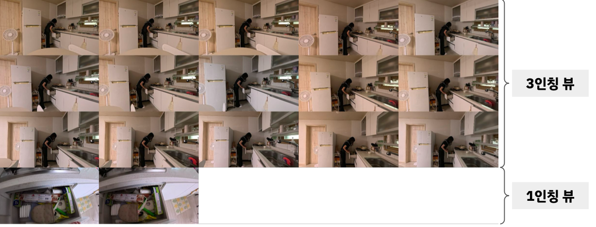 슈퍼브에이아이는 로봇이 집 안에서 자연스럽게 움직이기 위해 필요한 시점을 ‘공간을 이해하는 눈’과 ‘조작을 위한 눈’으로 나눠 설계했습니다. 그리고 독파모 1차수에서는 이 중 두 가지 핵심 시점의 데이터를 집중적으로 구축했습니다.